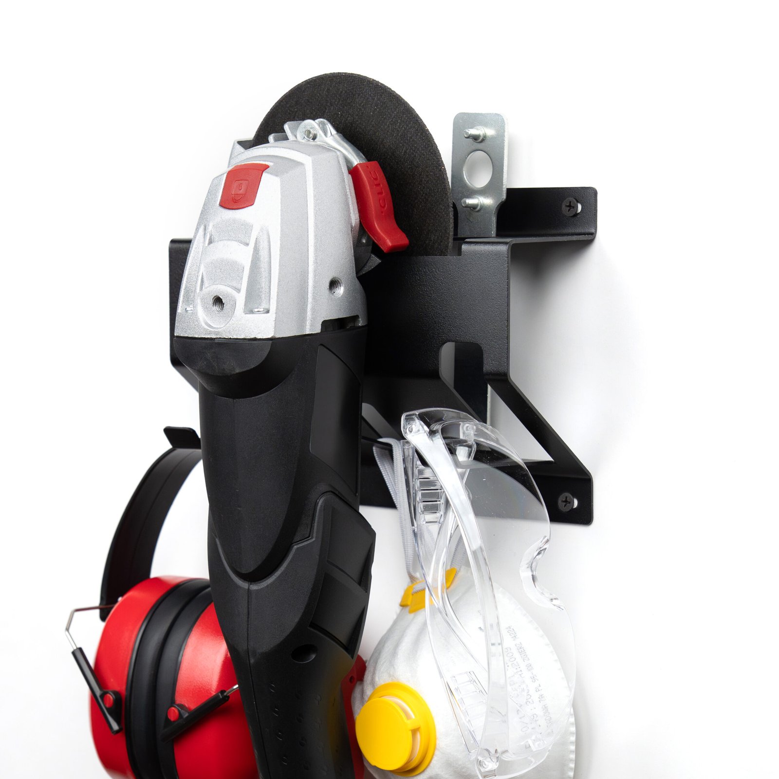 Organizatora panele leņķa slīpmašīnai ar diska diametru 115–125 mm. Panelī paredzēta vieta aizsargbrillēm un instrumentam disku maiņai. Komplektā ietilpst divi āķi rezerves diskiem, kurus var ērti piestiprināt. Sienas stiprinājums palīdz uzturēt kārtību, atbrīvo darba virsmu un padara darbu ērtāku.